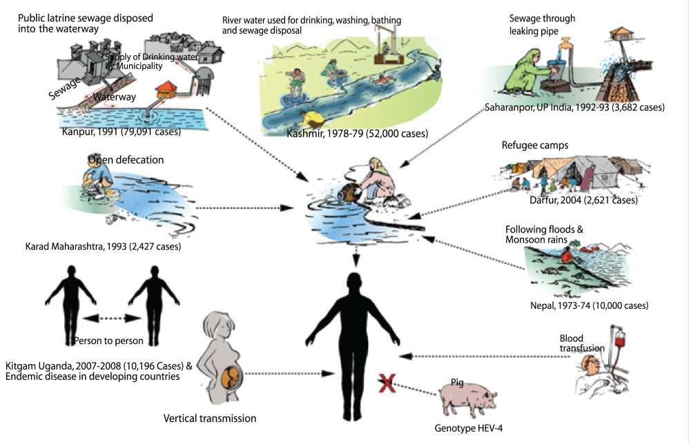 প্রতিটি প্রাদুর্ভাবেই, সংক্রমণের সাথে দূষিত খাবার পানি এবং ভালভাবে হাত না ধোয়ার সংশ্লিষ্টতা উল্লেখযোগ্যভাবে প্রমাণিত হয়। ফোটানো বা বিশুদ্ধকৃত পানি পান, ভালভাবে রান্না করা খাবার খাওয়া, রাস্তার খাবার পরিহার করা এবং নিয়মিত সাবান ও পানির ধারায় হাত ধোয়ার মাধ্যমে এইচইভি-সহ অন্যান্য পানিবাহিত রোগ প্রতিরোধ করা সম্ভব।