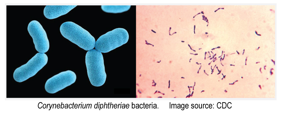 করেনিব্যাক্টেরিয়াম ডিপথেরি নামক জীবাণুর বিষাক্ত গোষ্ঠী দ্বারা সংক্রমিত ডিপথেরিয়া রোগটি একটি টিকা দ্বারা প্রতিরোধযোগ্য অসুখ। সাধারণত এই রোগ শ্বাসতন্ত্রের উপরিভাগের নরম মিউকাস ঝিল্লীতে আক্রমণ করে। এখানে একটি ছদ্মঝিল্লী তৈরী হয়ে ধীরে ধীরে শ্বাসনালিতে প্রতিবন্ধকতা সৃষ্টি করে। মারাত্মক অবস্থায় বিষ ছড়িয়ে পড়লে হৃদযন্ত্র এবং মস্তিষ্কে সমস্যা দেখা দেয়। ডিপথেরিয়ায় রোগটি সরাসরি কফ, থুথু অথবা ত্বকের ক্ষতের মাধ্যমে ছড়িয়ে পড়ে। এই রোগের সুপ্তাবস্থা সাধারণত ২ থেকে ৫ দিন। একজন রোগীর শ্বাসতন্ত্রের রসে যতদিন সক্রিয় ব্যাকটেরিয়া থাকে (সাধারণত আন্টিবায়োটিক ছাড়া ২ সপ্তাহ বা কদাচিৎ ৬ সপ্তাহ) ততদিনই সে অন্যকে সংক্রমিত করতে সক্ষম। শ্বাসতন্ত্রের ডিপথেরিয়া হলে ডিপথেরিয়া অ্যান্টিটক্সিন (ডিএটি) দিয়ে এর চিকিৎসা শুরু করা হয়। আদর্শগত ভাবে উপসর্গ শুরু হওয়ার ৪৮ ঘন্টা পরে চিকিৎসা শুরু হয়। ব্যাকটেরিয়া নির্মূল করতে, টক্সিন বা বিষ উৎপাদন বন্ধ করতে এবং সংক্রমণ ক্ষমতা কমাতে অ্যান্টিবায়োটিক ব্যবহৃত হয়। সংস্পর্শে আসা ব্যক্তিদের জন্য, ডিপথেরিয়া টক্সয়েড টিকা সহ প্রফাইল্যাকটিক অ্যান্টিবায়োটিক চিকিৎসার পরামর্শ দেওয়া হয়। ডিপথেরিয়ার ক্ষেত্রে মৃত্যুর অনুমিত হার ২৯%। কখনো চিকিৎসা পায়নি এবং কখনো টিকাও দেওয়া হয়নি, এমন ব্যক্তিদের মাঝে মৃত্যু হার সবচেয়ে বেশী আর সেক্ষেত্রে পাঁচ বছরের কম বয়সী টিকাবিহীন শিশুর সংখ্যা সর্বাধিক।