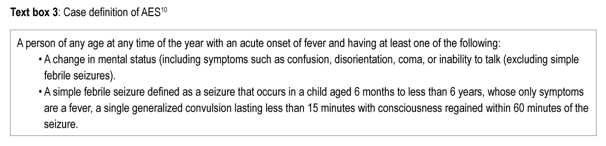 Japanese encephalitis (JE) is a vector-borne, vaccine-preventable disease transmitted by the culex mosquito. An infected person acquires lifelong immunity if they recover from the infection. Infected children are at a greater risk of developing encephalitis, which may cause death or lifetime morbidity. The objective of JE case-based surveillance is to understand the epidemiology, predisposing factors and associated clinical features. A nation-wide surveillance system started in 2017. This surveillance has 103 sentinel sites, among these, 82 are Government facilities (tertiary level medical college hospitals, district hospitals and specialized institutions) and 21 private hospitals.
