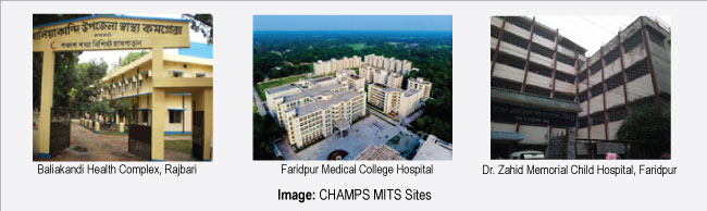 ১৯৭১ সালে স্বাধীনতা লাভের পর বাংলাদেশ পাঁচ বছরের নীচের শিশু ও মাতৃমৃত্যু উল্লেখজনক হারে কমিয়ে আনতে সক্ষম হয়েছে। ১৯৭২ সালে প্রতি হাজার জীবিত জন্ম নেয়া শিশুর মাঝে ২২৯ টি মৃত্যু থেকে ২০১৯ সালে ৩৮ এ নেমে এসেছে। বাংলাদেশ এই নিম্নগতি স্বত্তেও টেকসই উন্নয়ন লক্ষ্য ৩.২ অনুযায়ী প্রতিরোধযোগ্য নবজাতক ও পাঁচবছরের কমবয়সী শিশু মৃত্যুহার কমানোর লক্ষ্যমাত্রা থেকে এখনো অনেক পিছিয়ে রয়েছে। পাঁচ বছরের কম বয়সী ও গর্ভস্থ শিশুদের মৃত্যুর কারণ বুঝতে পারা এবং প্রমাণ নির্ভর নীতিমালা ও কর্মসূচি প্রণয়নের মাধ্যমে শিশুমৃত্যু কমিয়ে আনার মূল উদ্দেশ্য নিয়ে বাংলাদেশ চ্যাম্পস-এ যুক্ত হয়। চ্যাম্পস বাংলাদেশ, গণপ্রজাতন্ত্রী বাংলাদেশ সরকারের অধীনে জাতীয় রোগতত্ত্ব, রোগনিয়ন্ত্রণ ও গবেষণা ইনস্টিটিউট এবং বঙ্গবন্ধু শেখ মুজিব মেডিকেল কলেজের সহযোগিতায় জাতীয় উদরাময় রোগ গবেষণা কেন্দ্র দ্বারা পরিচালিত হচ্ছে। মাঠ পর্যায়ে কাজের জন্য শুরুতে রাজবাড়ী জেলার বালিয়াকান্দি উপজেলা নির্বাচিত হলেও পরে ফরিদপুর জেলার আরও ছয়টি উপজেলায় সম্প্রসারিত হয়। হাসপাতালভিত্তিক জরিপ প্রতিষ্ঠান হিসেবে বালিয়াকান্দি উপজেলা স্বাস্থ্য কমপ্লেক্স, ফরিদপুর মেডিকেল কলেজ হাসপাতাল এবং জাহিদ মেমোরিয়াল শিশু হাসপাতালকে নির্বাচিত করা হয়।
