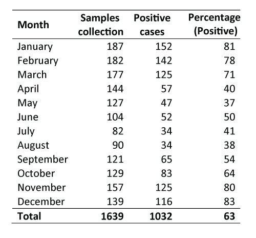 Table 2: Sample collection and rota virus positivity in 2024